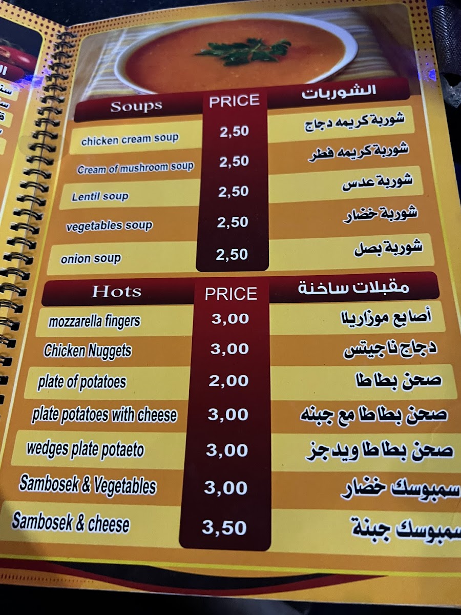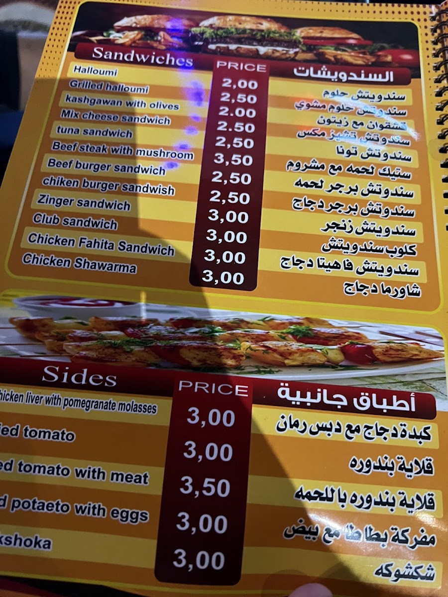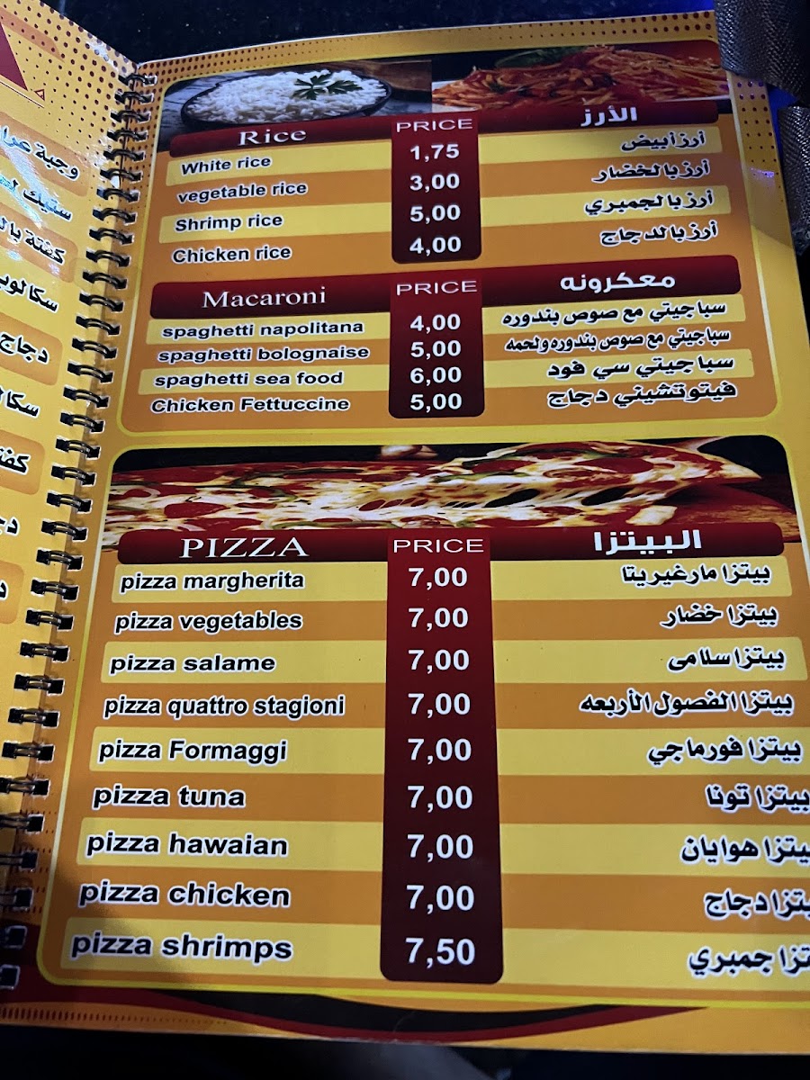 Sho Laziz Cafe & Restaurant offers a delightful selection of Mediterranean and seafood dishes, making it a great destination for those seeking fresh and flavorful meals. Among its standout offerings is the Danies Fish, a dish known for its tender texture and rich flavor, perfect for seafood lovers. The Fish and Chips brings a classic touch, with crispy golden batter and a generous serving of flaky fish. For those looking for something more exotic, the Shrimp is a must-try, prepared to perfection with a balance of seasoning that enhances its natural sweetness. Additionally, the صياديه ولا احلى is a signature dish, packed with bold spices and a unique blend of ingredients that highlight the restaurant's mastery in seafood. To round off the meal, the بوظه عربيه offers a sweet, creamy dessert that beautifully captures the essence of traditional Arabic flavors. Sho Laziz combines these exceptional dishes into a menu that promises satisfying meals for all tastes, making it a go-to spot for anyone visiting Aqaba.